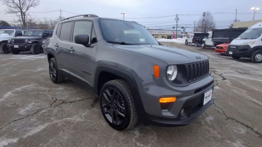 Nielsen Dodge of Morristown is proud to offer this gorgeous 2021 Jeep Renegade a positively wonderful-looking SUV with the following Features: Quick Order Package 2XY 80th Edition (1-Year SiriusXM Guardian Trial, 5-Year SiriusXM Traffic Service, 5-Year SiriusXM Travel Link Service, 8.4" Touchscreen Display, 80th Edition Premium Cloth Bucket Seats, Accent Color Exterior Mirrors, Berber Floor Mats w/80th Anniversary Tag, Black Headliner, For Details, Visit DriveUconnect.com, Gloss Black Steering Wheel Bezel, GPS Navigation, Granite Crystal Jeep Badge, HD Radio, Jeep 80th Anniversary Edition, Jeep 80th Anniversary Instrumental Panel Badge, Radio: Uconnect 4C Nav w/8.4" Display, Satin Granite Exterior Accents, Satin Granite Roof Rails, SiriusXM Traffic Plus, SiriusXM Travel Link, and Wheels: 19" x 7.5" Granite Painted Aluminum), FCA US LLC Certified Pre-Owned Certified, 17" x 7.0" Aluminum Wheels, 3.734 Final Drive Ratio, 4-Wheel Disc Brakes, 6 Speakers, ABS brakes, Air Conditioning, Alloy wheels, AM/FM radio: SiriusXM, Anti-whiplash front head restraints, Apple CarPlay/Android Auto, Automatic temperature control, Brake assist, Compass, Delay-off headlights, Driver door bin, Driver vanity mirror, Dual front impact airbags, Dual front side impact airbags, Electronic Stability Control, Emergency communication system: SiriusXM Guardian, Four wheel independent suspension, Front anti-roll bar, Front Bucket Seats, Front Center Armrest, Front dual zone A/C, Front fog lights, Front reading lights, Fully automatic headlights, Heated door mirrors, Illuminated entry, Knee airbag, Low tire pressure warning, Manual Adjust 4-Way Front Passenger Seat, Normal Duty Suspension, Occupant sensing airbag, Outside temperature display, Overhead airbag, Panic alarm, ParkView Rear Back-Up Camera, Passenger door bin, Passenger vanity mirror, Power door mirrors, Power steering, Power windows, Premium Cloth Bucket Seats, Radio data system, Radio: Uconnect 4 w/7" Display, Rear anti-roll bar, Rear window defroster, Rear window wiper, Remote keyless entry, Roof rack: rails only, Security system, Speed control, Split folding rear seat, Spoiler, Steering wheel mounted audio controls, Tachometer, Telescoping steering wheel, Tilt steering wheel, Traction control, Trip computer, Variably intermittent wipers, and VoltmeteR. Odometer is 8045 miles below market average! 21/29 City/Highway MPG