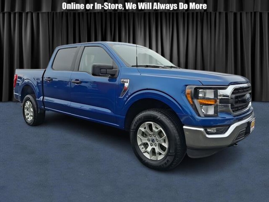 Discover the power and versatility of the Blue 2023 Ford F-150 XLT SuperCrew 4x4. This truck is equipped with the robust EcoBoost 3.5L Twin Turbo V6 engine paired with a 10-speed shiftable automatic transmission, providing impressive performance for work or play. Enjoy advanced safety features like Front and Rear Automatic Emergency Braking, Lane Keeping Assist, Rear Cross Traffic Alert, and Blind Spot Safety for peace of mind on every drive. Stay connected with SYNC infotainment, an 8-inch touchscreen, Wireless Apple CarPlay and Android Auto, and FordPass Connect with Wi-Fi hotspot capability. The spacious SuperCrew cab offers comfort for the whole crew, with convenient storage solutions and durable cloth upholstery. Outfitted with 18-inch silver aluminum wheels, all-terrain tires, a power locking tailgate, and a bumper hitch trailer hitch, this F-150 is ready for any adventure. Don't miss your chance to own America's favorite pickup-visit us for a test drive today!