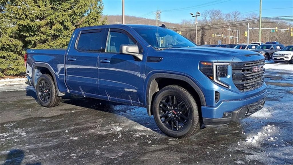 Downpour Metallic 2024 GMC Sierra 1500 Elevation 4WD 8-Speed Automatic 2.7L I4 Turbocharged DOHC 16V LEV3-SULEV30 310hp 8-Speed Automatic, 4WD, Black Cloth.