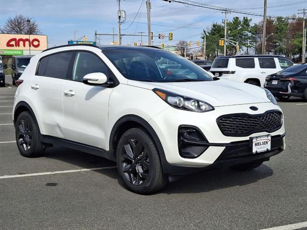Check out this sleek White 2022 Kia Sportage Nightfall AWD! Experience the confidence of All-Wheel Drive paired with advanced safety features like Front Automatic Emergency Braking, Lane Keeping Assist, Rear Cross Traffic Alert, and Pedestrian Detection Pre-collision Warning. Stay connected on every drive with an 8-inch touchscreen display featuring both Apple CarPlay and Android Auto, plus Bluetooth wireless connectivity. Enjoy premium touches like a panoramic power sunroof, leather-wrapped steering wheel, and stylish black exterior accents. With heated side mirrors, power driver seat with lumbar support, and dual-level cargo area storage, comfort and convenience are front and center. Perfect for daily commutes or weekend adventures, this Sportage delivers style, technology, and peace of mind. Schedule your test drive today!
