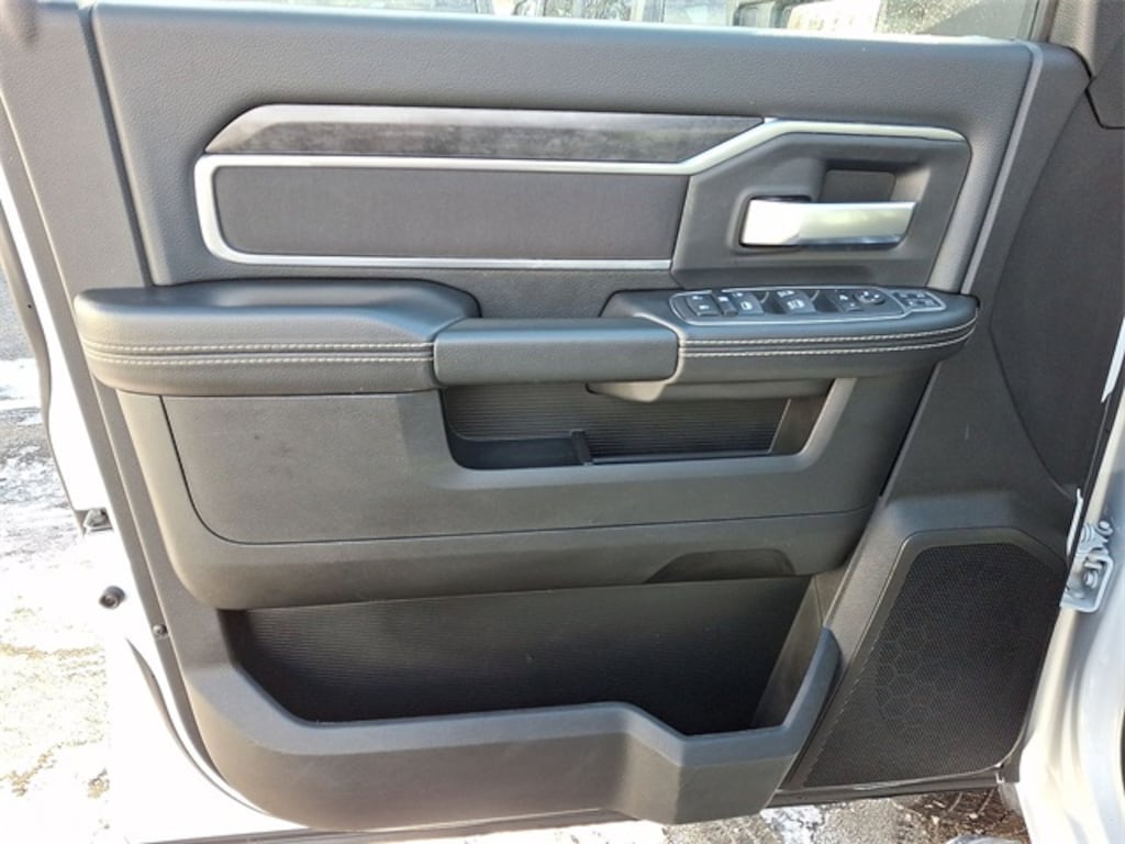 Bed Utility Group (LED Bed Lighting, MOPAR Deployable Bed Step, and MOPAR Spray In Bedliner), Level 1 Equipment Group (2 Way Rear Headrest Seat, 2nd Row In Floor Storage Bins, 4 Way Front Headrests, 40/20/40 Split Bench Seat, 4G LTE Wi-Fi Hot Spot, 8.4" Touchscreen Display, Apple CarPlay, Auto Power-Folding Mirrors, Big Horn IP Badge, Black Exterior Mirrors, Bluetooth Handsfree Phone & Audio, Center Hub, Connectivity - US/Canada, Dual Glove Boxes, Exterior Mirrors Courtesy Lamps, Exterior Mirrors w/Heating Element, Exterior Mirrors w/Supplemental Signals, Foam Bottle Insert (Door Trim Panel), Footwell Courtesy Lamp, For Details, Visit DriveUconnect.com, For More Info, Call 800-643-2112, Forward & Reverse Utility Lights, Front Armrest w/Cupholders, Front Center Seat Cushion Storage, Front Fog Lamps, Front Seat Back Map Pockets, Global Telematics Box Module (TBM), Glove Box Lamp, Google Android Auto, GPS Antenna Input, Integrated Center Stack Radio, Integrated Voice Command w/Bluetooth, Leather Wrapped Steering Wheel, Locking Lower Glove Box, Manual Adjust 4-Way Front Passenger Seat, Mirror Running Lights, Power 2-Way Driver Lumbar Adjust, Power Adjust 8-Way Driver Seat, Power Adjust Mirrors, Power Adjustable Convex Aux Mirrors, Power Heated Fold Telescope Mirrors, Power Telescoping Mirrors, Rear 60/40 Folding Seat, Rear Dome w/On/Off Switch Lamp, Remote USB Port - Charge Only, Selectable Tire Fill Alert, SiriusXM Radio Service, SiriusXM Satellite Radio, Steering Wheel Mounted Audio Controls, Storage Tray, and Wheels: 18" x 8.0" Polished Aluminum), Protection Group (Tow Hooks), Quick Order Package 2GZ Big Horn, 3.73 Axle Ratio, 4-Wheel Disc Brakes, 6 Speakers, 9 Alpine Speakers w/Subwoofer, ABS brakes, Active Noise Control System, Air Conditioning, Anti-Spin Differential Rear Axle, Brake assist, Bumpers: chrome, Center Stack Storage Drawer, Chrome Flat Cab-Length Side Steps, Cloth 40/20/40 Bench Seat, Compass, Delay-off headlights, Driver door bin, Dual front impact airbags, Dual front side impact airbags, Electronic Stability Control, Electronically Controlled Throttle, Emergency communication system: SiriusXM Guardian, Front anti-roll bar, Front Center Armrest w/Storage, Front License Plate Bracket, Front reading lights, Fully automatic headlights, Heated door mirrors, Illuminated entry, Low tire pressure warning, Manual Adjust 4-Way Driver Seat, Manufacturer's Statement of Origin, Occupant sensing airbag, Outside temperature display, Overhead airbag, Overhead console, Panic alarm, ParkView Rear Back-Up Camera, Passenger door bin, Passenger vanity mirror, Power door mirrors, Power steering, Power windows, Premium Cloth 40/20/40 Bench Seat (DISC), Radio data system, Radio: Uconnect 3 w/5" Display, Radio: Uconnect 5 W w/8.4" Display, Rear anti-roll bar, Rear Folding Seat, Rear seat center armrest, Rear step bumper, Remote keyless entry, Speed control, Tachometer, Tilt steering wheel, Tip Start, Traction control, Trip computer, Turn signal indicator mirrors, Variably intermittent wipers, Voltmeter, and Wheels: 18" x 8.0" Steel Chrome ClaD.