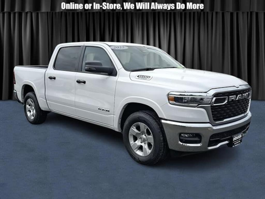 Certified. Bright White Clearcoat 2025 Ram 1500 Big Horn/Lone Star 4WD 8-Speed Automatic 3.6L V6 24V VVT Bed Utility Group (Exterior 115V AC Outlet, MOPAR 4 Adjustable Cargo Tie-Down Hooks, MOPAR Spray In Bedliner, and Pick-Up Box Lighting), Big Horn Level 1 Equipment Group (115V Auxiliary Power Outlet, 2nd Row In Floor Storage Bins, 400W Inverter, Auto Power-Folding Mirrors, Auto-Dimming Exterior Driver Mirror, Auto-Dimming Rear-View Mirror, Black Exterior Mirrors, Black Premium Power Mirrors, Convex Wide-Angle Exterior Mirror Insert, Exterior Mirrors Courtesy Lamps, Exterior Mirrors w/Heating Element, Exterior Mirrors w/Supplemental Signals, Glove Box Lamp, Heated Front Seats, Heated Steering Wheel, Leather Wrapped Steering Wheel, Power 2-Way Driver Lumbar Adjust, Power Adjust 8-Way Driver Seat, Power Adjustable Pedals, Rear Power Sliding Window, Rear Window Defroster, Steering Wheel Mounted Audio Controls, Sun Visors w/Illuminated Vanity Mirrors, and Universal Garage Door Opener), Quick Order Package 23Z Big Horn (Big Horn Badge), FCA US LLC Certified Pre-Owned Certified, 3 Rear Seat Head Restraints, 3.21 Rear Axle Ratio, 4 Way Front Headrests, 4-Wheel Disc Brakes, 4G LTE Wi-Fi Hot Spot, 6 Speakers, ABS brakes, Air Conditioning, Alloy wheels, AM/FM radio, Apple CarPlay/Android Auto, Auto High-beam Headlights, Brake assist, Bumpers: chrome, Cloth Bench Seat, Compass, Connectivity - US/Canada, Delay-off headlights, Driver door bin, Dual front impact airbags, Dual front side impact airbags, Electronic Stability Control, Front anti-roll bar, Front Center Armrest w/Storage, Front fog lights, Front reading lights, Front Seat Back Map Pockets, Front wheel independent suspension, Fully automatic headlights, GPS Antenna Input, Heated door mirrors, Illuminated entry, Integrated Voice Command w/Bluetooth, Low tire pressure warning, Manual Adjust 4-Way Front Passenger Seat, Manual Folding Exterior Mirrors, Occupant sensing airbag, Outside temperature display, Overhead airbag, Overhead console, Panic alarm, ParkView Rear Back-Up Camera, Passenger door bin, Passenger vanity mirror, Power door mirrors, Power steering, Power windows, Radio data system, Radio: Uconnect 5 W w/8.4" Display, RAM Grille Badge - Chrome, Rear 60/40 Folding Seat, Rear anti-roll bar, Rear seat center armrest, Rear step bumper, Remote keyless entry, Speed control, Split folding rear seat, Supplier Part Tracking (J-1), Tachometer, Telescoping steering wheel, Tilt steering wheel, Traction control, Trip computer, USB Host Flip, Variably intermittent wipers, Voltmeter, and Wheels: 18" x 8" Cast-Aluminum Painted. The team of sales, finance, and service professionals at our dealership go above and beyond to deliver exceptional customer service, every time. We're proud of the service we provide our customers, and we have the people to back it up. We've repeatedly earned the Customer First Award for Excellence, which is bestowed to select dealerships that have achieved the highest level of customer experience recognition in the program's five core areas: Customer Treatment, Employee Engagement, Facilities, Processes, and Training Certification. Be sure to check out our Google reviews for further proof of our dedication to serving customers like you. Odometer is 8846 miles below market average! FCA US LLC Certified Pre-Owned Details: * Roadside Assistance * Vehicles Up to 75,000 Miles and/or 5 Model Years. 24-Hour Towing & Roadside Assistance, Car Rental Allowance, CARFAX̨̉ Vehicle History ReportTM and an Introductory 3-month Subscription to SiriusXM̨̉ Satellite Radio & Certified Warranty Upgrades * Limited Warranty: 3 Month/3,000 Mile (whichever comes first) after new car warranty expires or from certified purchase date * 125 Point Inspection * Vehicle History * Warranty Deductible: $100 * Transferable Warranty * Powertrain Limited Warranty: 84 Month/100,000 Mile (whichever comes first) from original in-service dateCertified Pre-OwnedCertified Pre-Owned